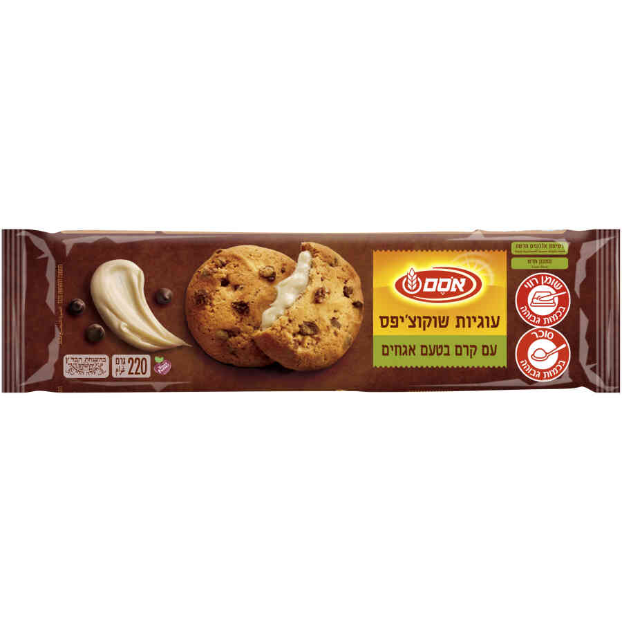 אסם עוגיות שוקוצ'יפס ממולאות במילוי קרם בטעם אגוזים