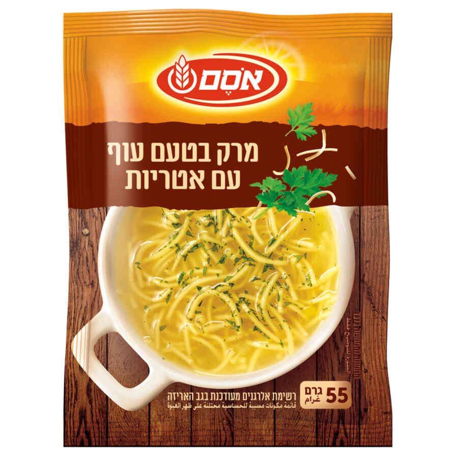 אסם מרק בטעם עוף ואטריות יעודי.6 12*55ג