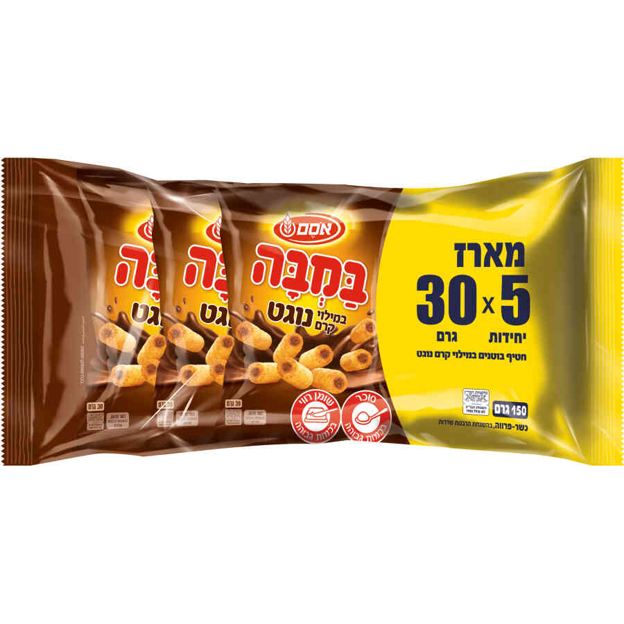 במבה במילוי קרם נוגט מסומנת בתוויות אדומות מכיוון שהיא מכילה מעל 10 גרם סוכר ומעל 4 גרם שומן רווי ב-100 גרם.