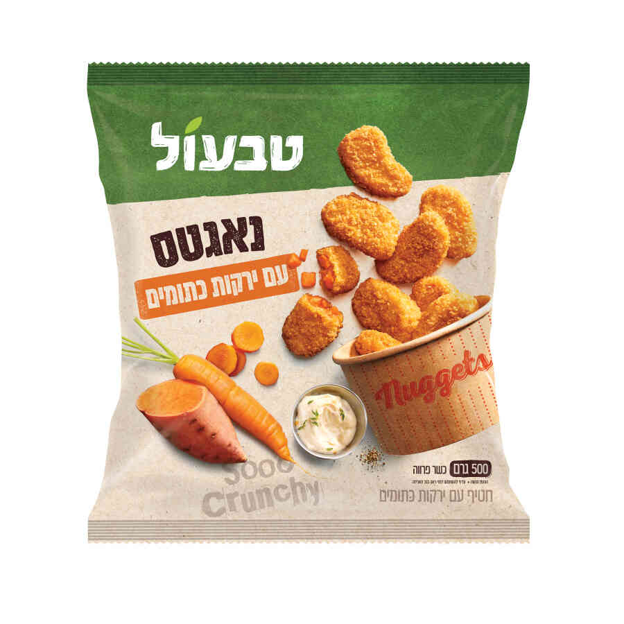 מנה של נאגטס ירקות כתומים (4 יחידות) מהווה מקור לסיבים תזונתיים ועשירה בירקות