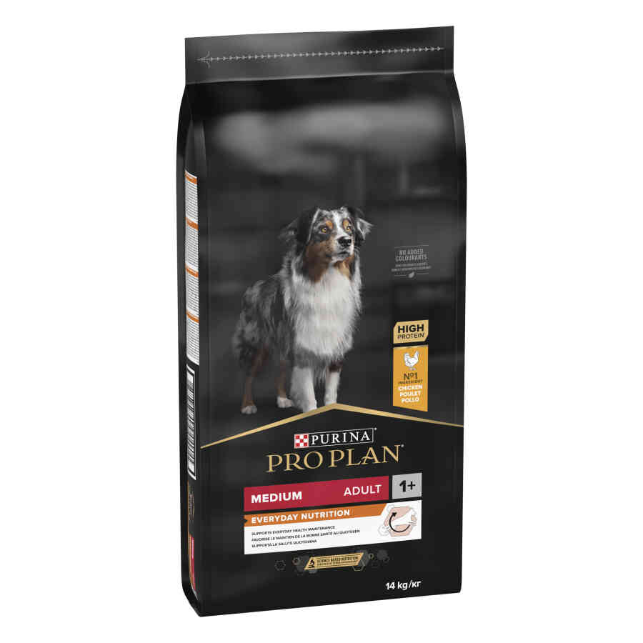 מזון יבש מלא המקדם את בריאותם הכללית של כלבים בוגרים מגזעים בינוניים במשקל שבין 10 ק"ג ל- 25 ק"ג ושומר עליהם במצב גופני מצוין.