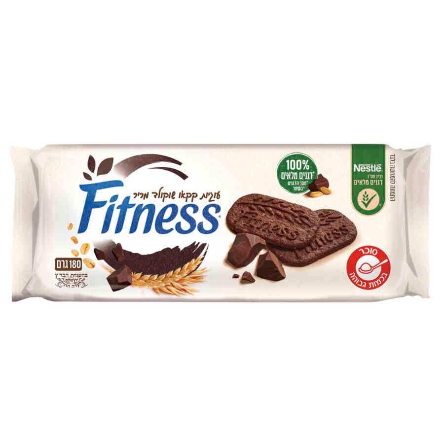 עוגיות פיטנס שוקולד מריר מסומנות בתווית אדומה מכיוון שהן מכילות 21 גרם סוכר ב-100 גרם. מנה של עוגיות פיטנס שוקולד מריר היא 27 גרם כ-3 יחידות, המכילה 5.7 גרם סוכר (כ-1.5 כפיות סוכר).